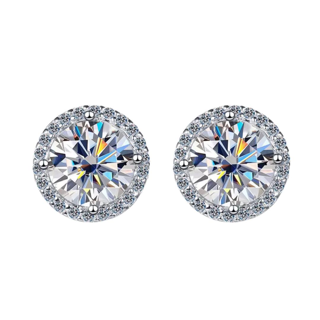 Orecchini Round Halo Cut (Argento & Moissanite)