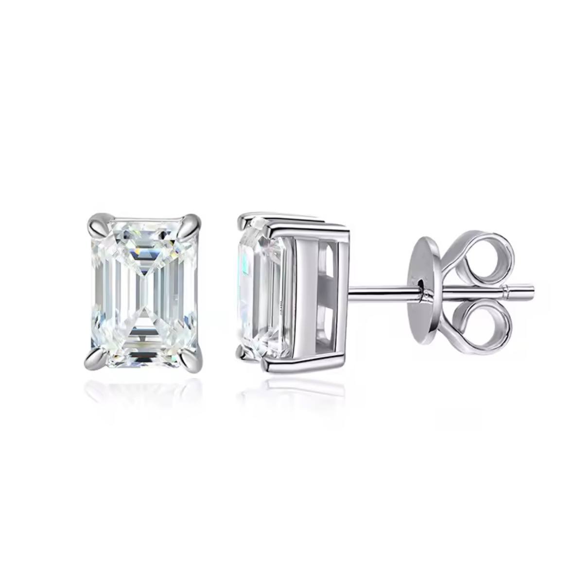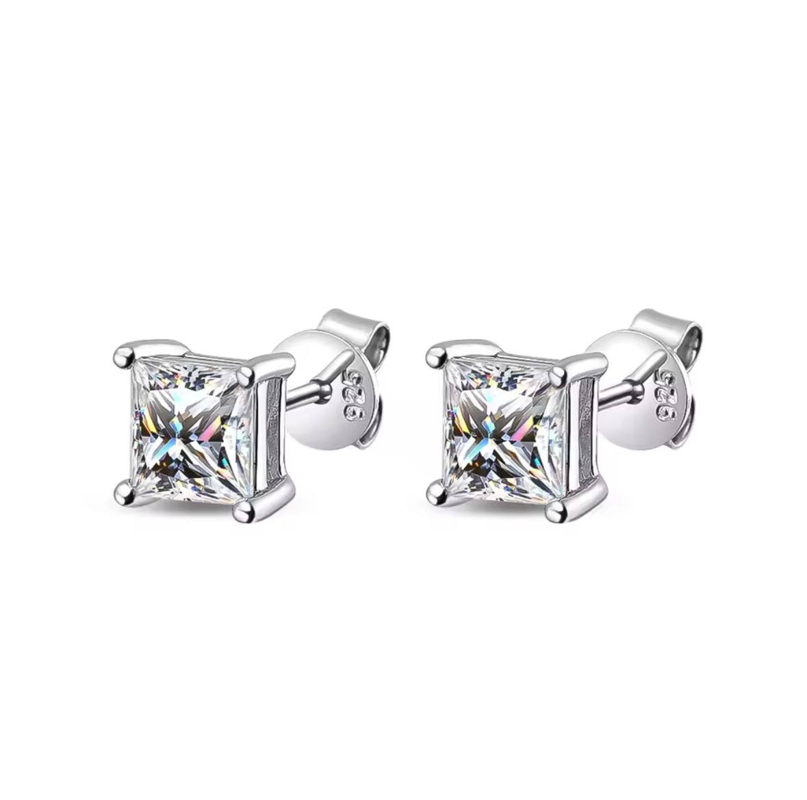 Orecchini Square Halo Cut (Argento & Moissanite)